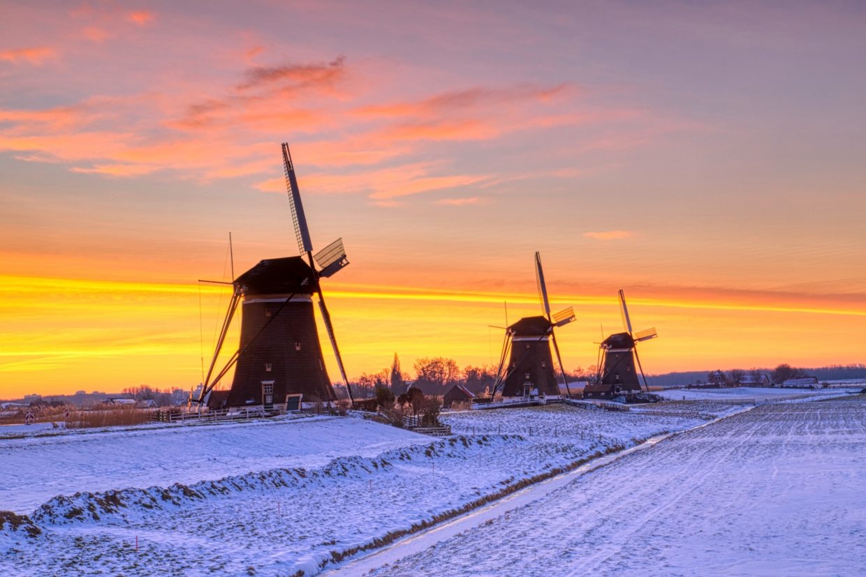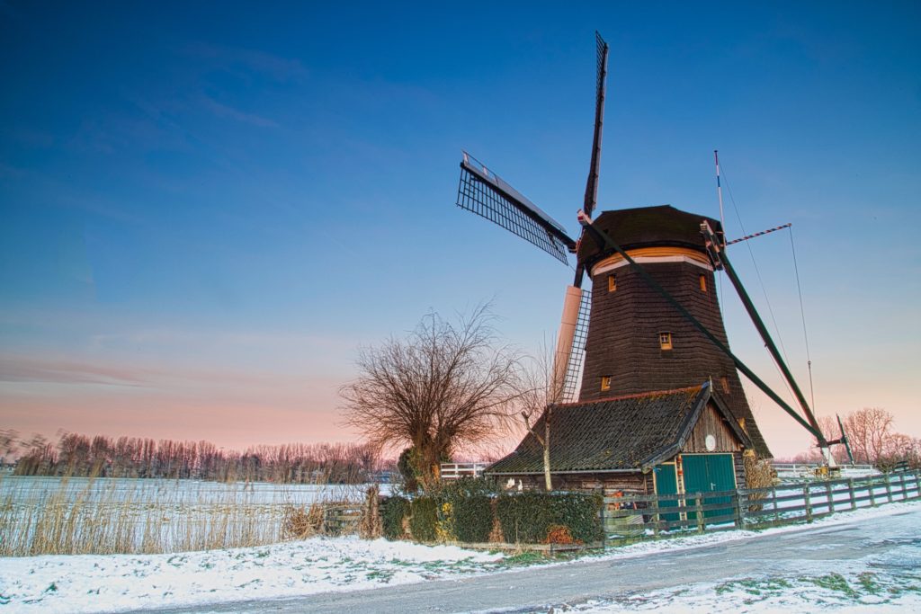 Another cold and clear morning in Leidschendam (NL). The “molendriegang” showed itself with a very nice red sky at sunrise. The cold and clear sky was just being covered with the high clouds that signalled the end of the ice period in the Netherlands.